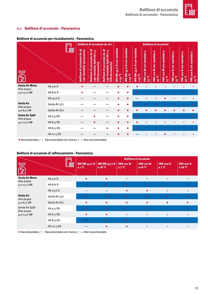 ● Raccomandato / ○ Raccomandato con riserva / — Non raccomandato