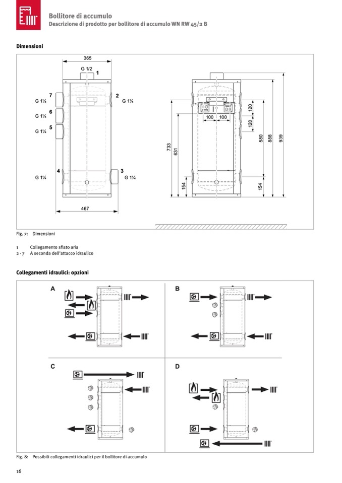 Fig. 8: Possibili collegamenti idraulici per il bollitore di accumulo