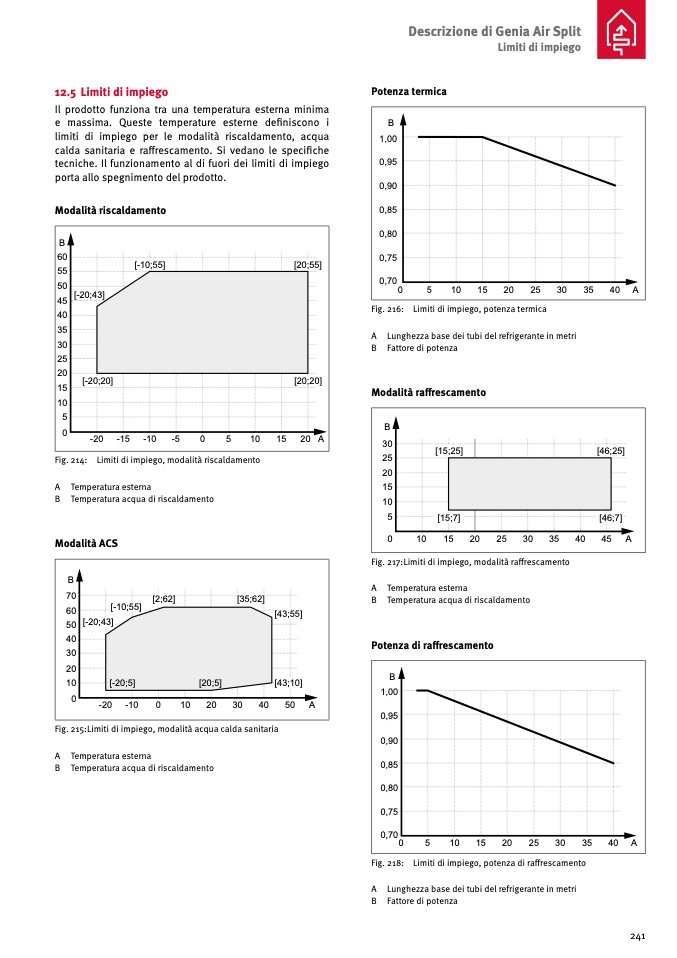 Fig. 218: Limiti di impiego, potenza di raffrescamento