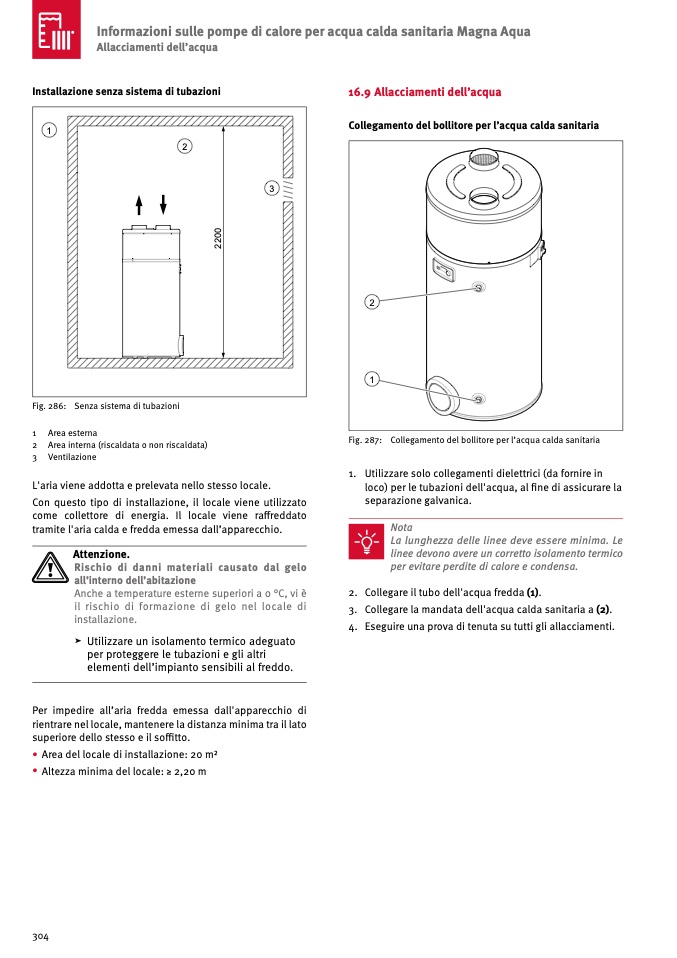 • Altezza minima del locale: ≥ 2,20 m