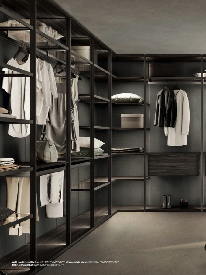 wall: mystic luxe titanium satin 120x280 471/4"x1101/4" stone chablis slats matte leather 30x280 114/5"x1101/4"
