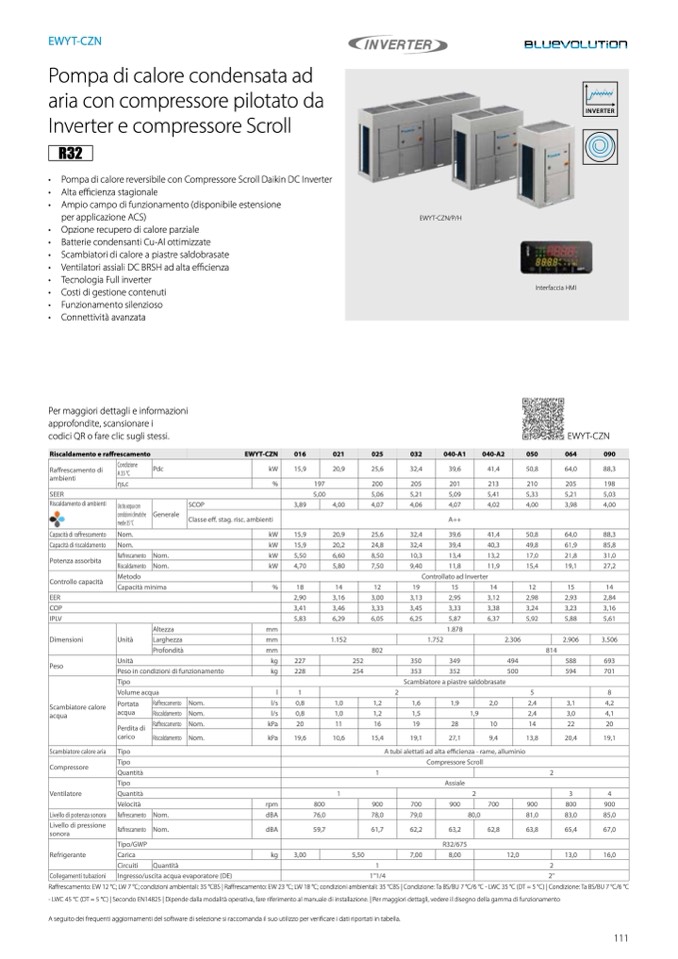 • Pompa di calore reversibile con Compressore Scroll Daikin DC Inverter