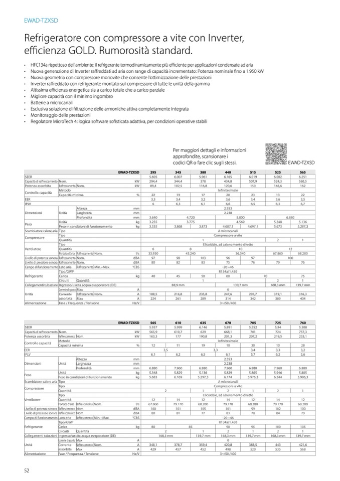 ffreddato con refrigerante montato sul compressore di tutte le unità della gamma