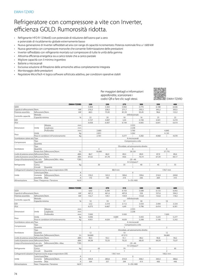 • Inverter raffreddato con refrigerante montato sul compressore di tutte le unità della gamma