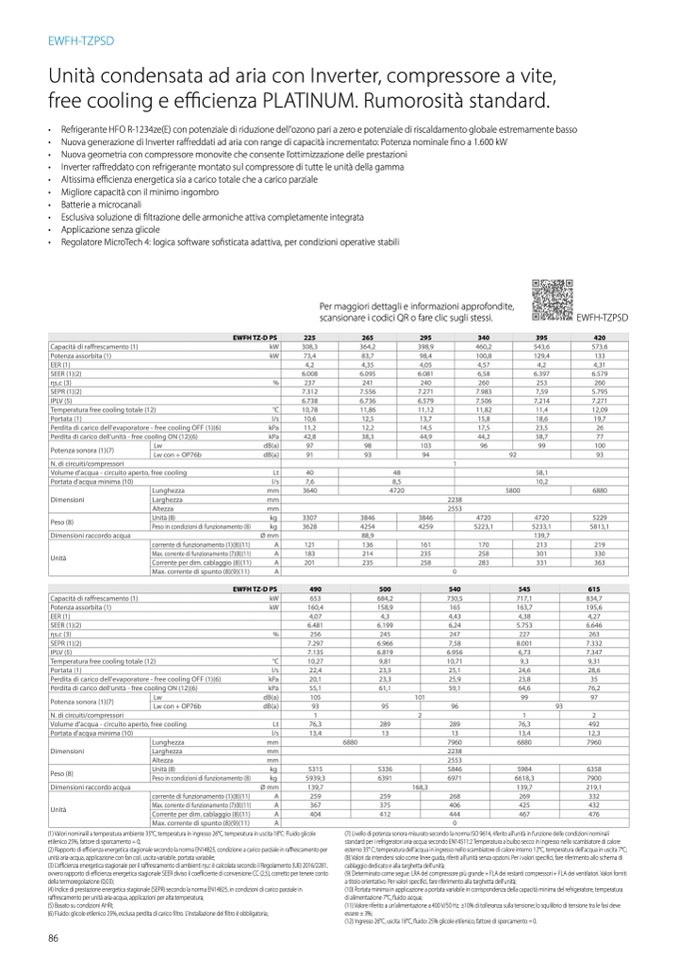 (4) Indice di prestazione energetica stagionale (SEPR) secondo la norma EN14825, in condizioni di carico parziale in