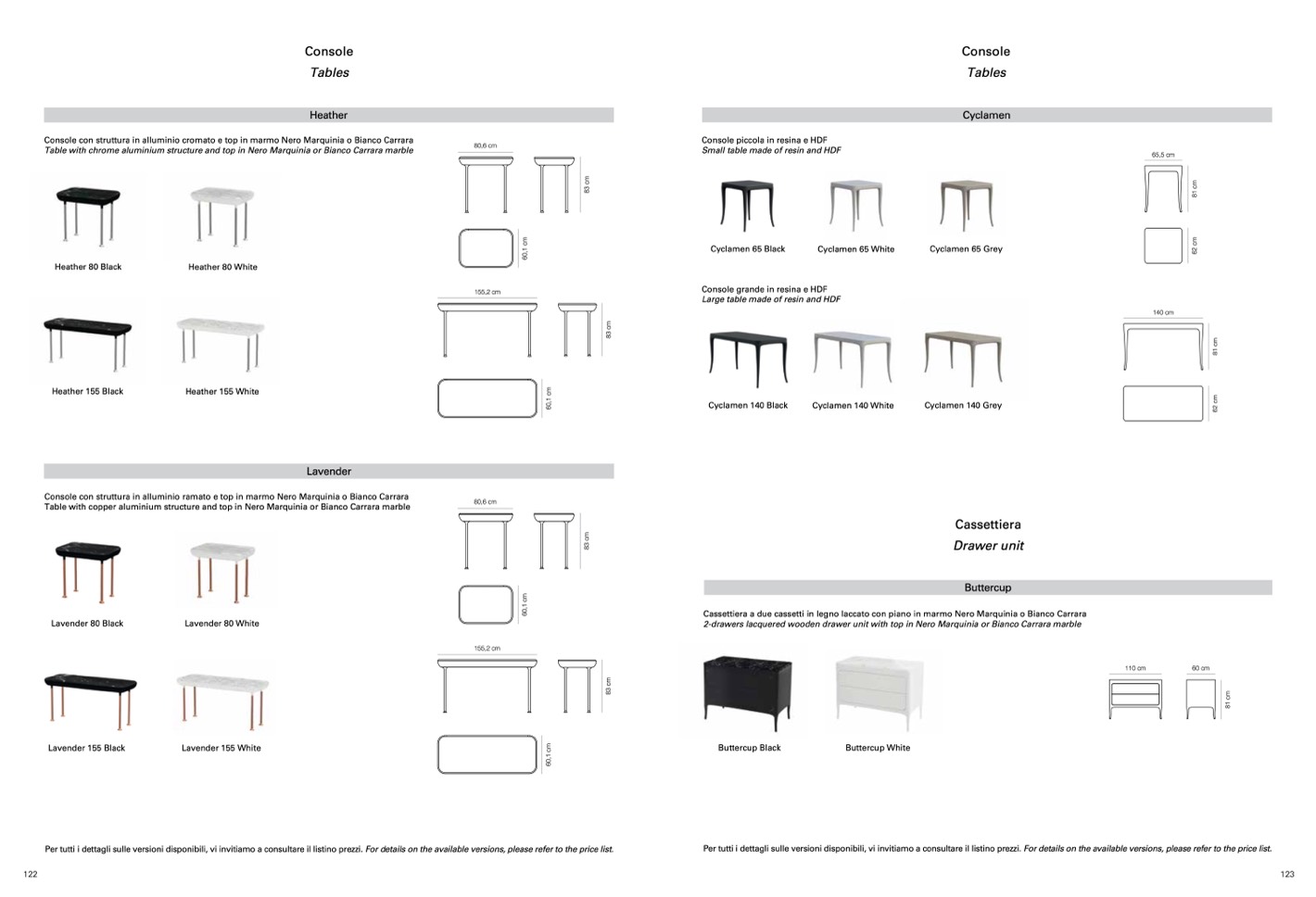Per tutti i dettagli sulle versioni disponibili, vi invitiamo a consultare il listino prezzi. For details on the available versions, please refer to the price list.