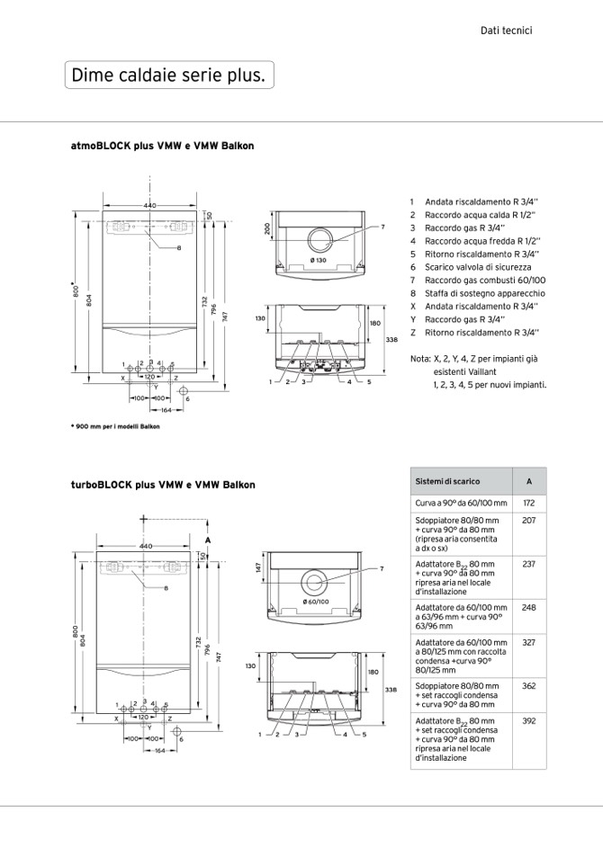 Nota: X, 2, Y, 4, Z per impianti già