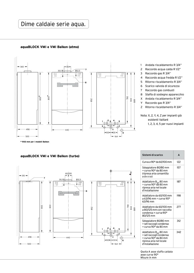 Nota: X, 2, Y, 4, Z per impianti già