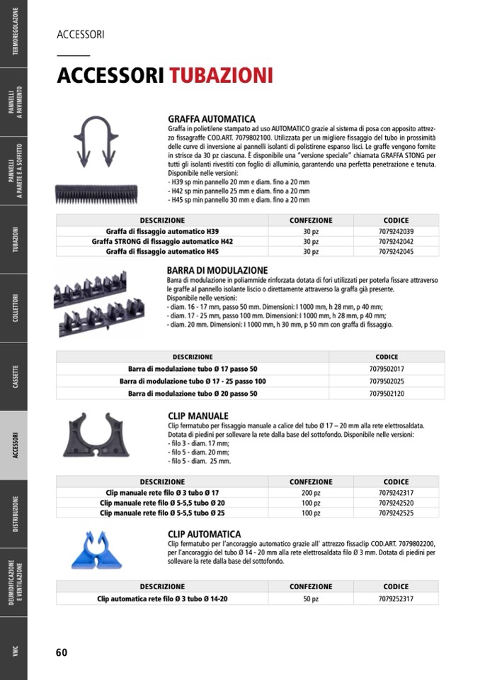 zo fissagraffe COD.ART. 7079802100. Utilizzata per un migliore fissaggio del tubo in prossimità