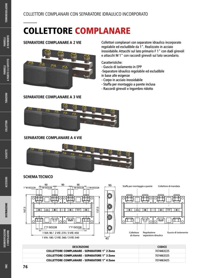 COLLETTORE COMPLANARE - SEPARATORE 1" 2 Zone