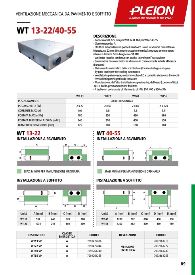 - Connessioni D. 125 mm per WT13 e D. 160 per WT22-40-55