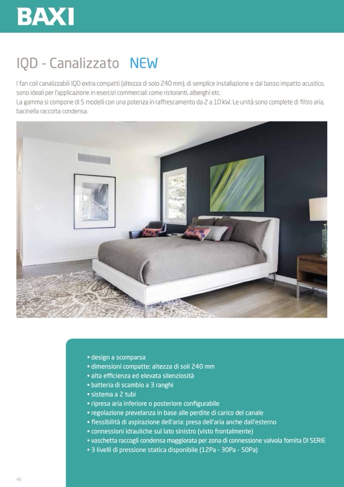 I fan coil canalizzabili IQD extra compatti (altezza di solo 240 mm), di semplice installazione e dal basso impatto acustico,