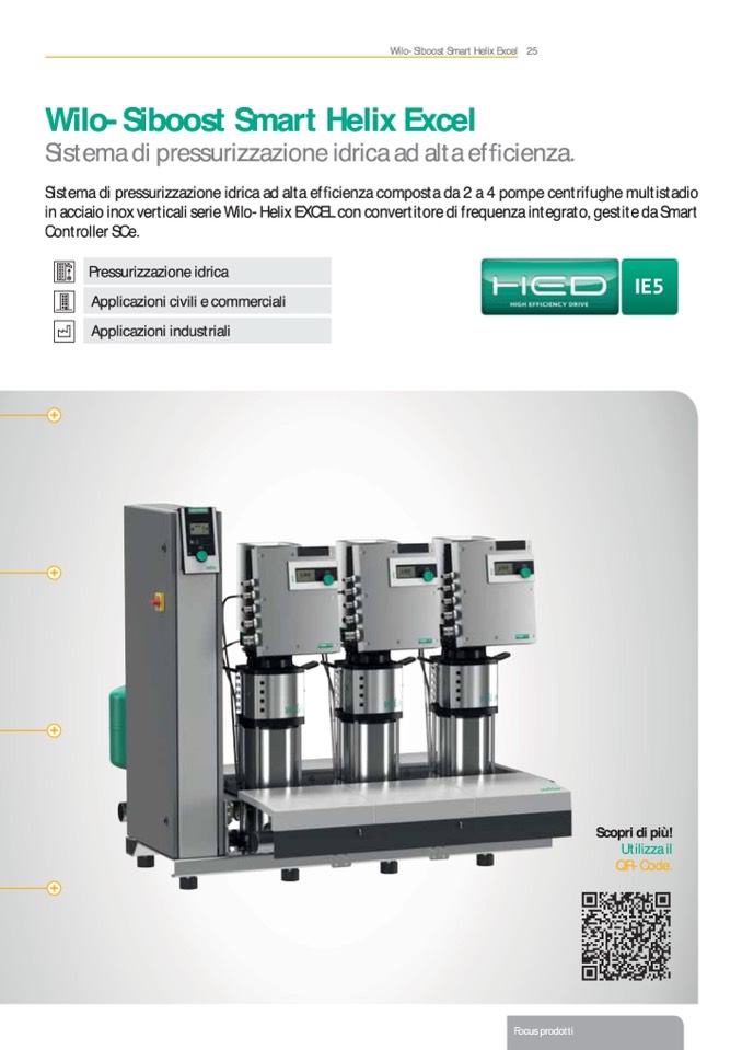 in acciaio inox verticali serie Wilo-Helix EXCEL con convertitore di frequenza integrato, gestite da Smart