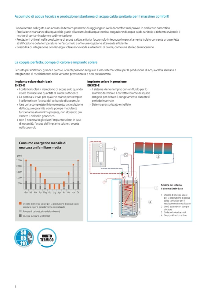 › Possibilità di integrazione con l’energia solare rinnovabile e altre fonti di calore, come una stufa o termocamino.