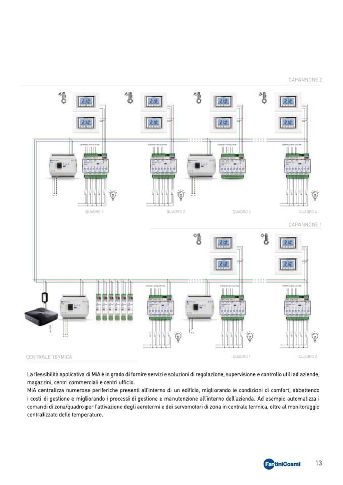 comandi di zona/quadro per l’attivazione degli aerotermi e dei servomotori di zona in centrale termica, oltre al monitoraggio