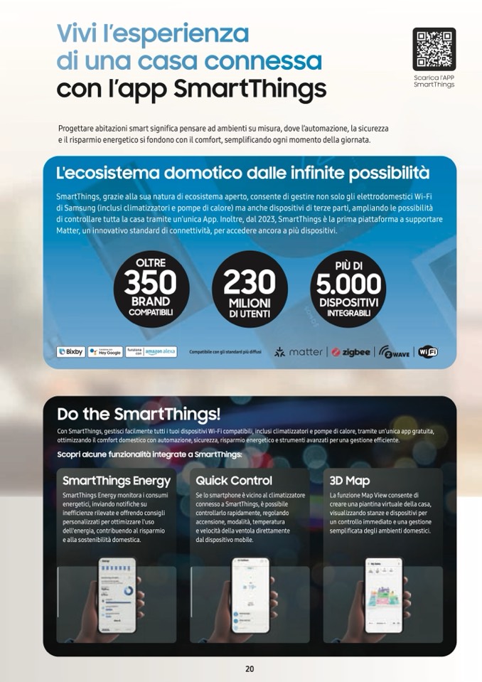Con SmartThings, gestisci facilmente tutti i tuoi dispositivi Wi-Fi compatibili, inclusi climatizzatori e pompe di calore, tramite un’unica app gratuita,