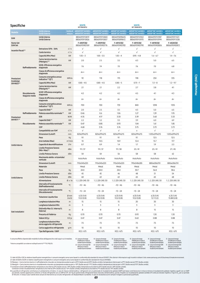 1 I dati di e C, le relative classificazioni energetiche e i consumi energetici annui sono asati in conformit allo standard di misura 111. er ulteriori informazioni sugli incentivi visitare il sito .samsung.comitusinessclimateenvironment.