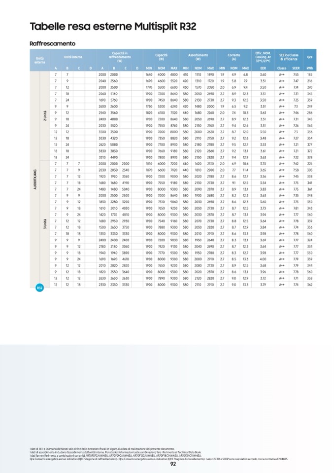 I dati di assorbimento includono l’assorbimento dell’unità interna. Per ulteriori informazioni sulle combinazioni, fare riferimento al Technical Data Book.