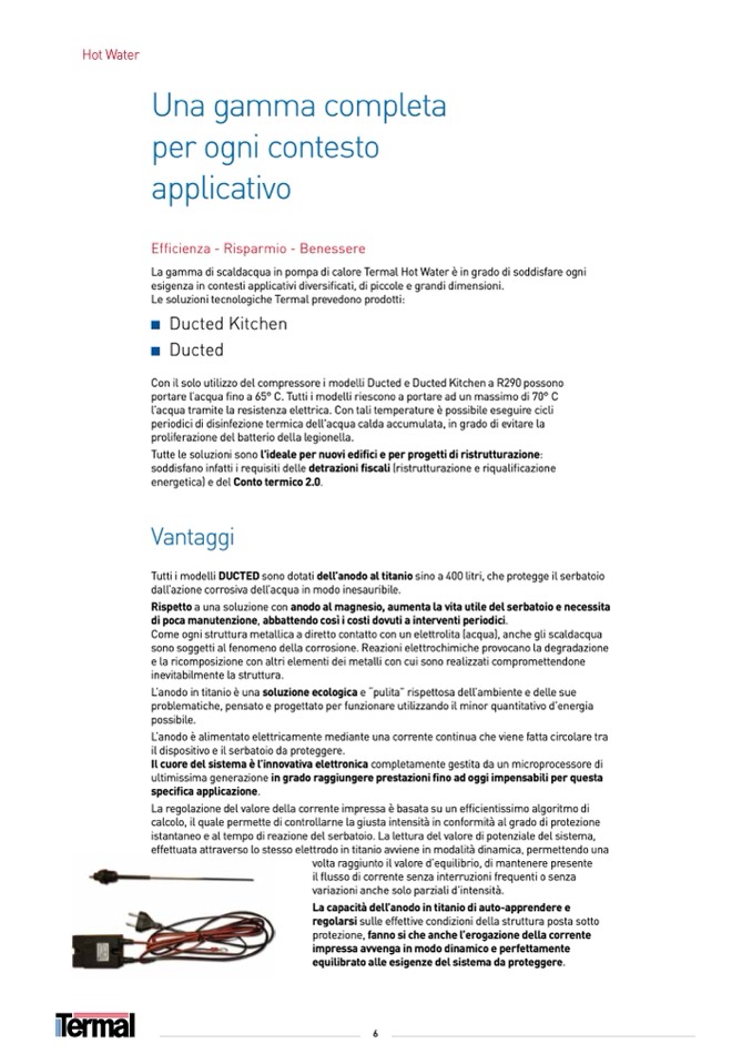 Tutti i modelli DUCTED sono dotati dell’anodo al titanio sino a 400 litri, che protegge il serbatoio