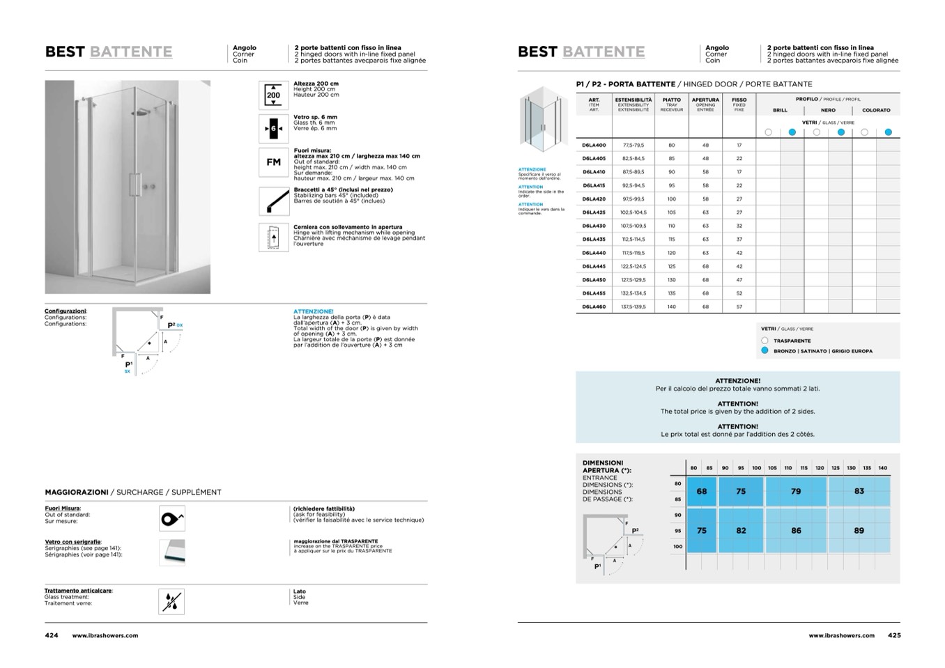 Per il calcolo del prezzo totale vanno sommati 2 lati.