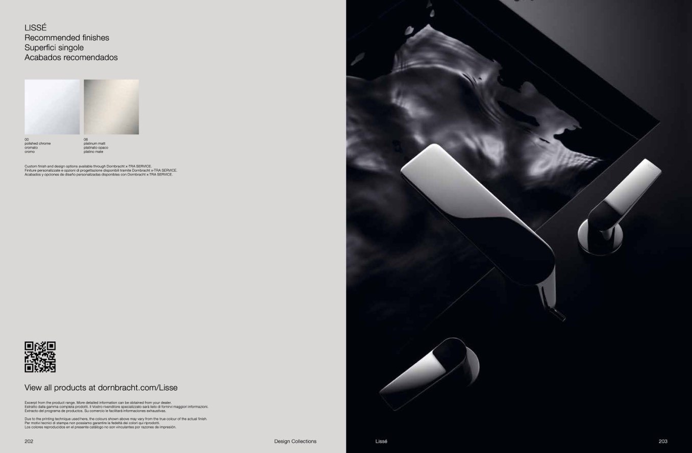 Finiture personalizzate e opzioni di progettazione disponibili tramite Dornbracht x-TRA SERVICE.