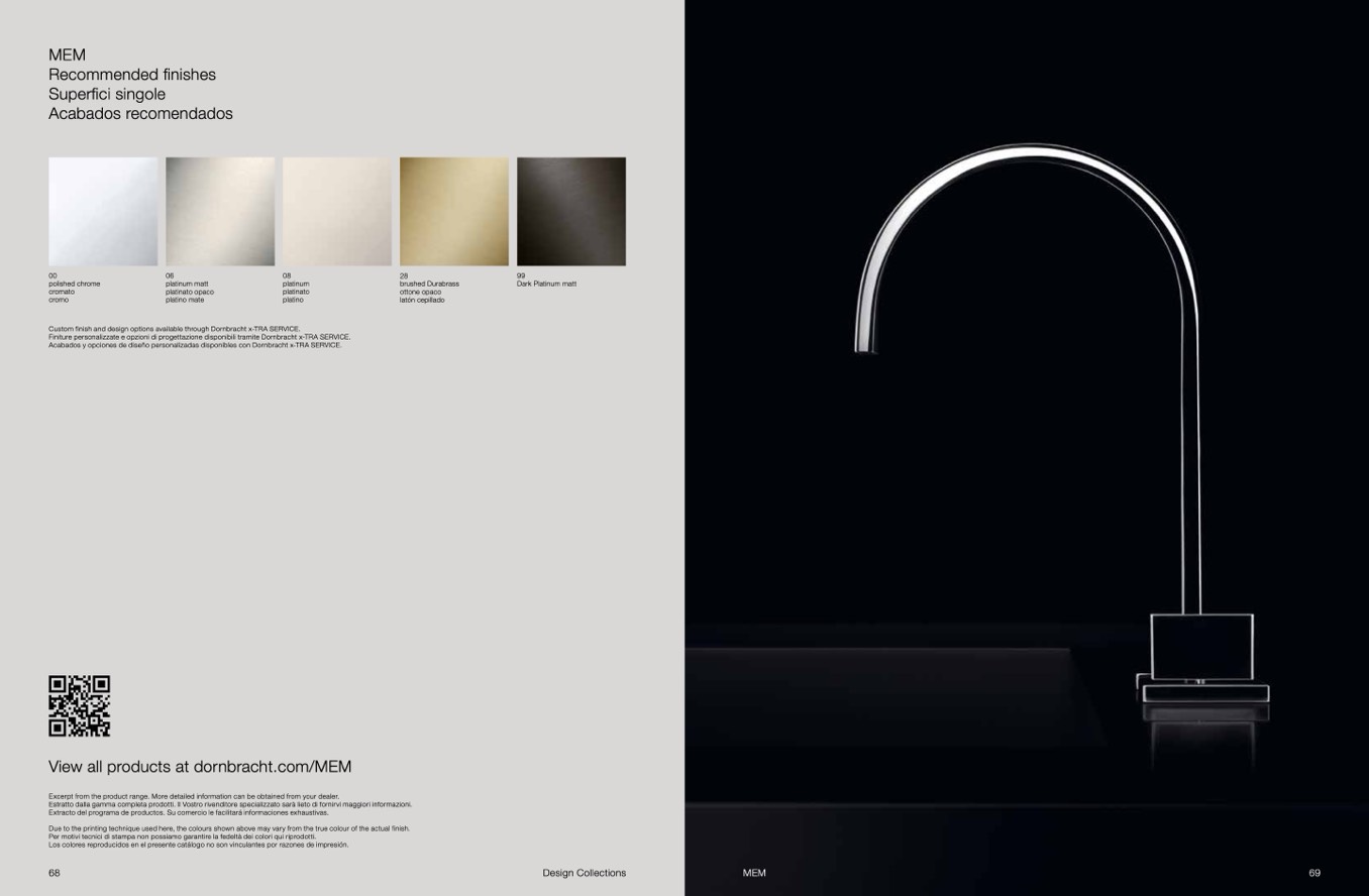 Acabados y opciones de diseño personalizadas disponibles con Dornbracht x-TRA SERVICE.