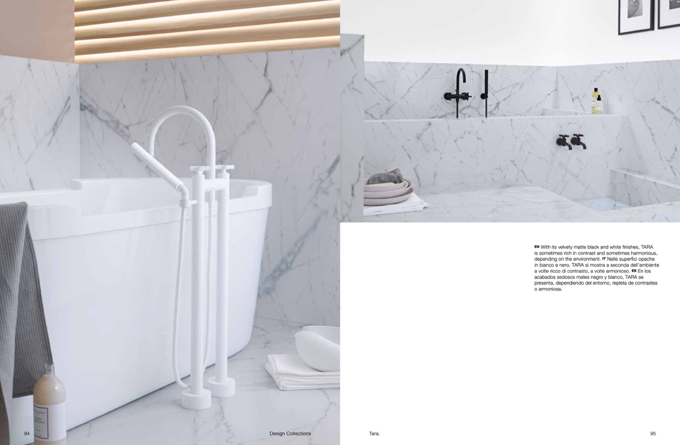 With its velvety matte black and white finishes, TARA