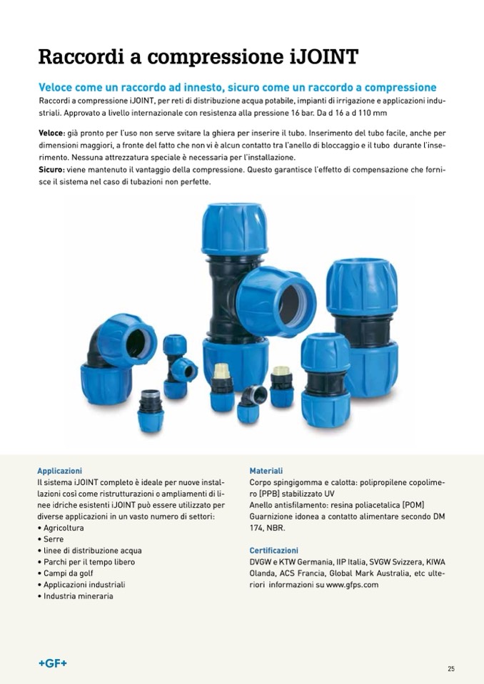Raccordi a compressione iJOINT, per reti di distribuzione acqua potabile, impianti di irrigazione e applicazioni indu-