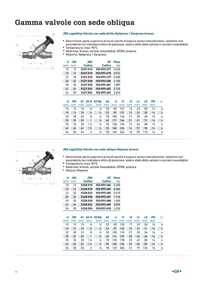 JRG LegioStop Valvola con sede obliqua Mapress bronzo