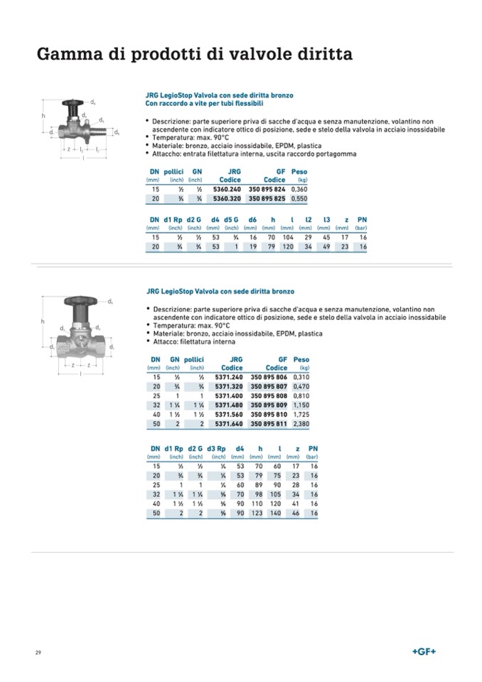 JRG LegioStop Valvola con sede diritta Mepla bronzo