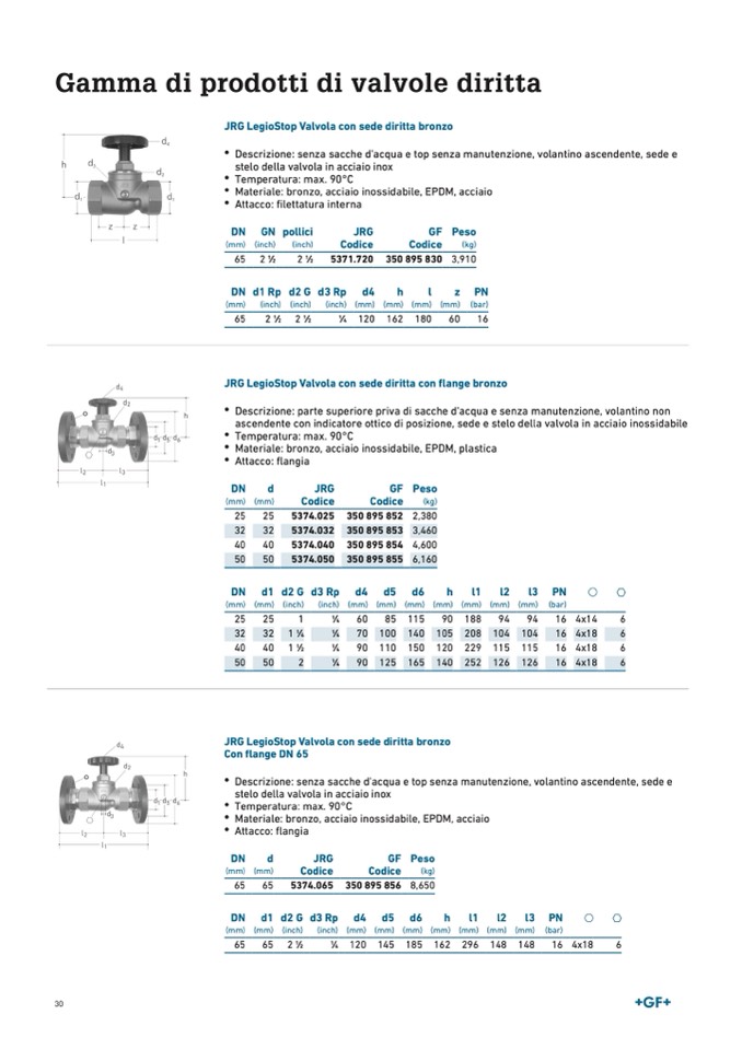 JRG LegioStop Valvola con sede diritta con flange bronzo