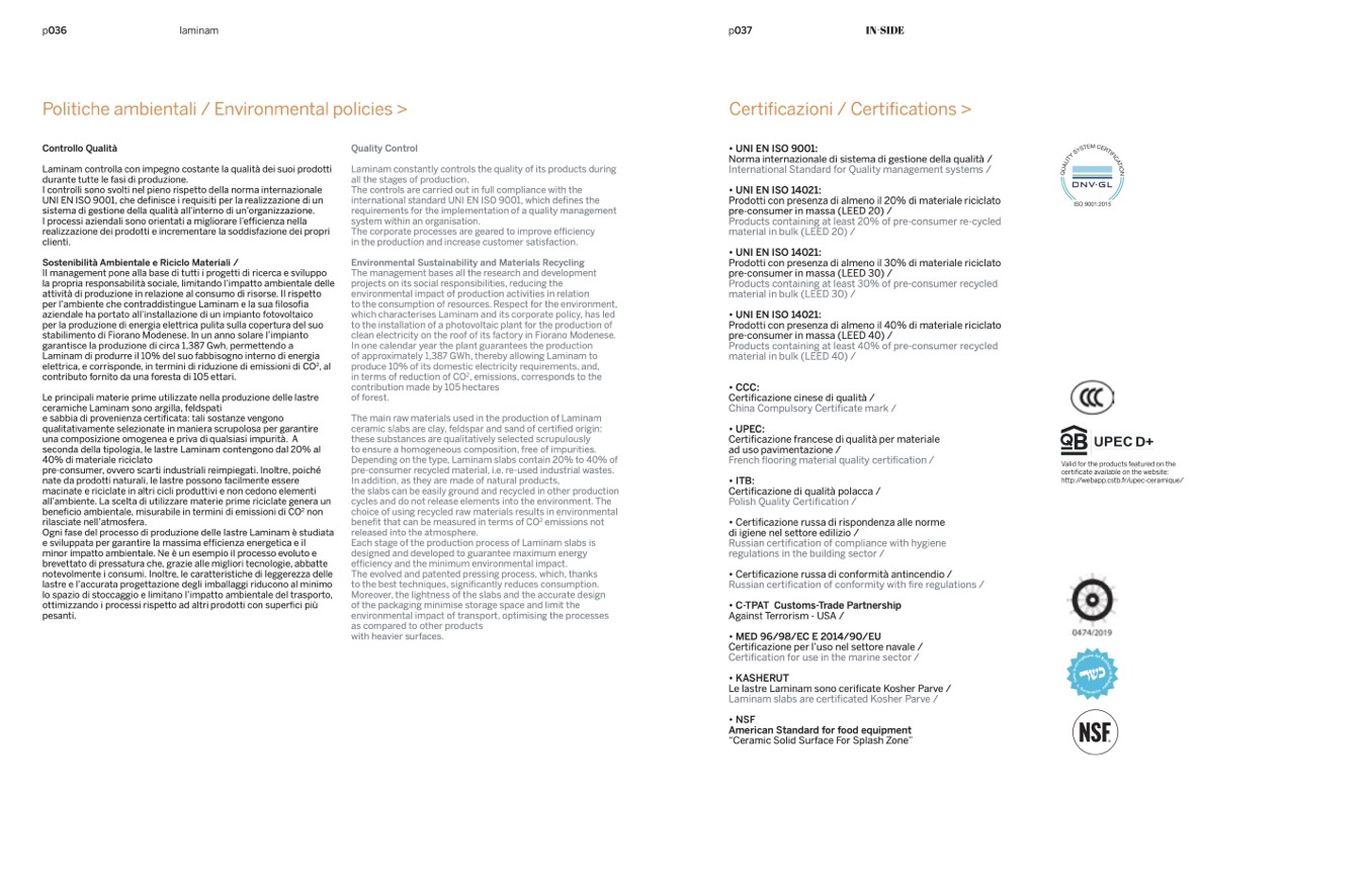 seconda della tipologia, le lastre Laminam contengono dal 20% al