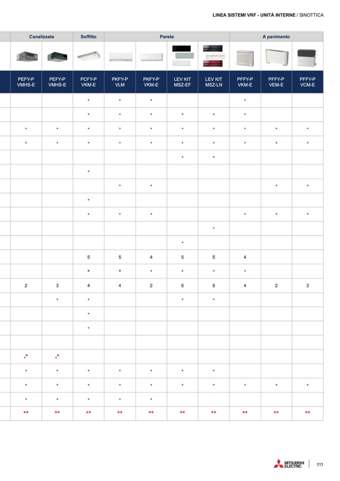 LINEA SISTEMI VRF - UNITÀ INTERNE / SINOTTICA