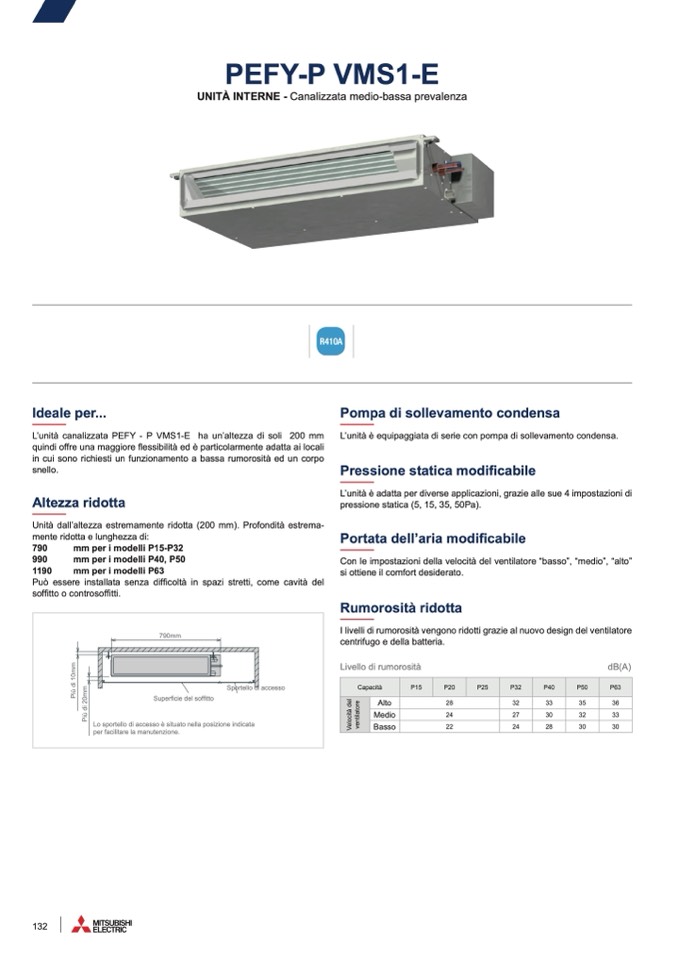 L’unità canalizzata PEFY - P VMS1-E ha un’altezza di soli 200 mm