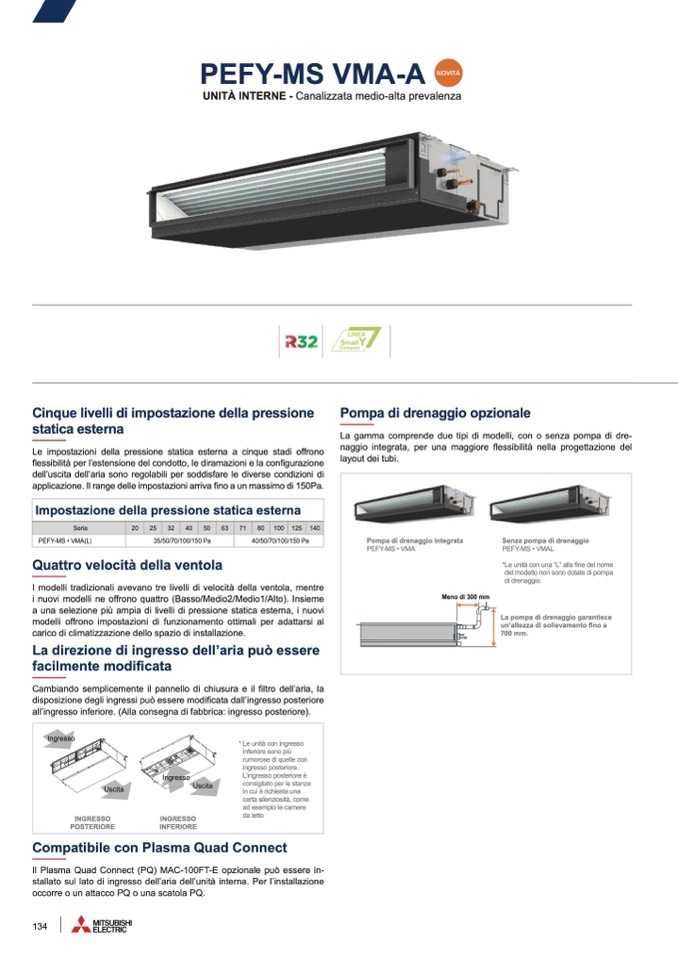a una selezione più ampia di livelli di pressione statica esterna, i nuovi