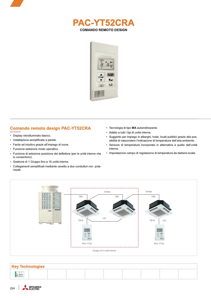 • Gestione di 1 Gruppo fino a 16 unità interne.