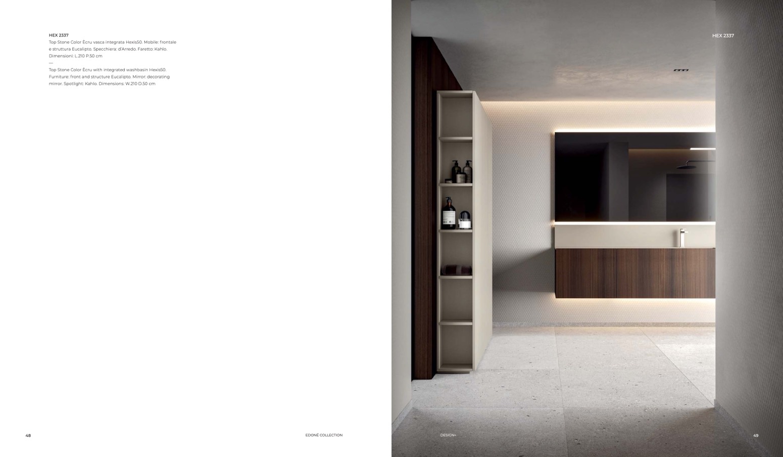 e struttura Eucalipto. Specchiera: d’Arredo. Faretto: Kahlo.
