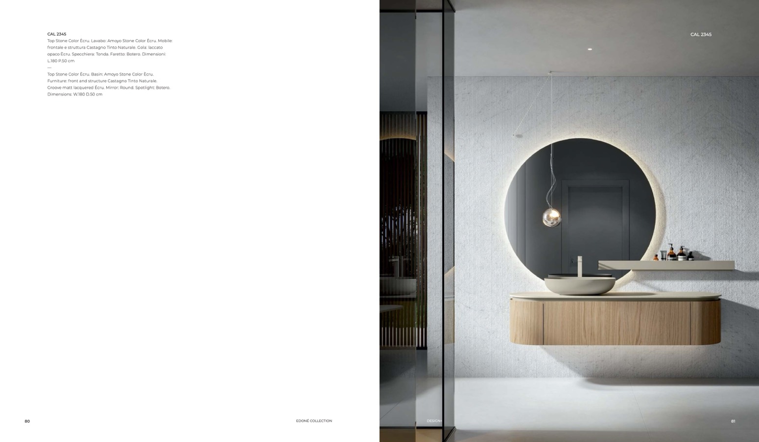 opaco Ècru. Specchiera: Tonda. Faretto: Botero. Dimensioni: