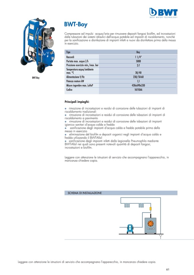 Compressore ad impulsi acqua/aria per rimuovere depositi fangosi biofilm, ed incrostazioni