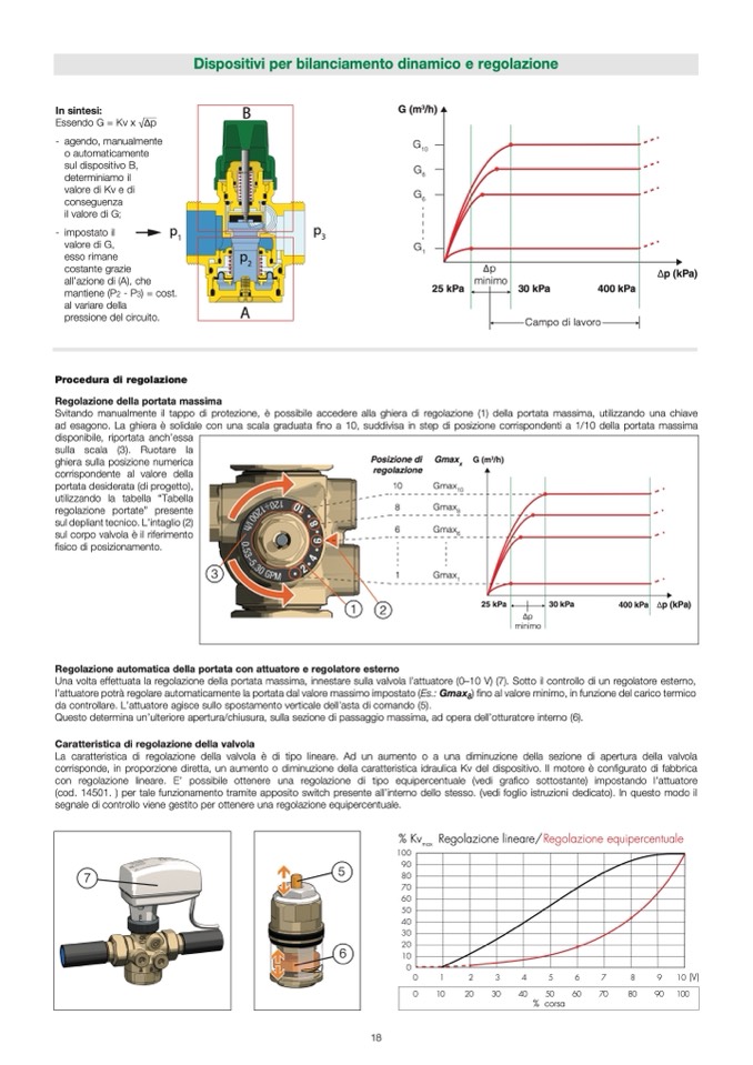 con regolazione lineare. E’ possibile ottenere una regolazione di tipo equipercentuale (vedi grafico sottostante) impostando l’attuatore