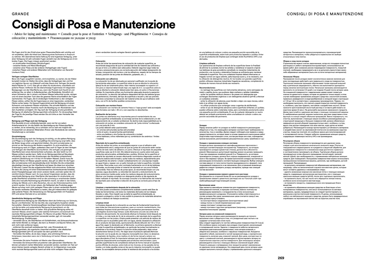 – Advice for laying and maintenance • Conseils pour la pose et l'entretien • Verlegungs - und Pflegehinweise • Consejos de
