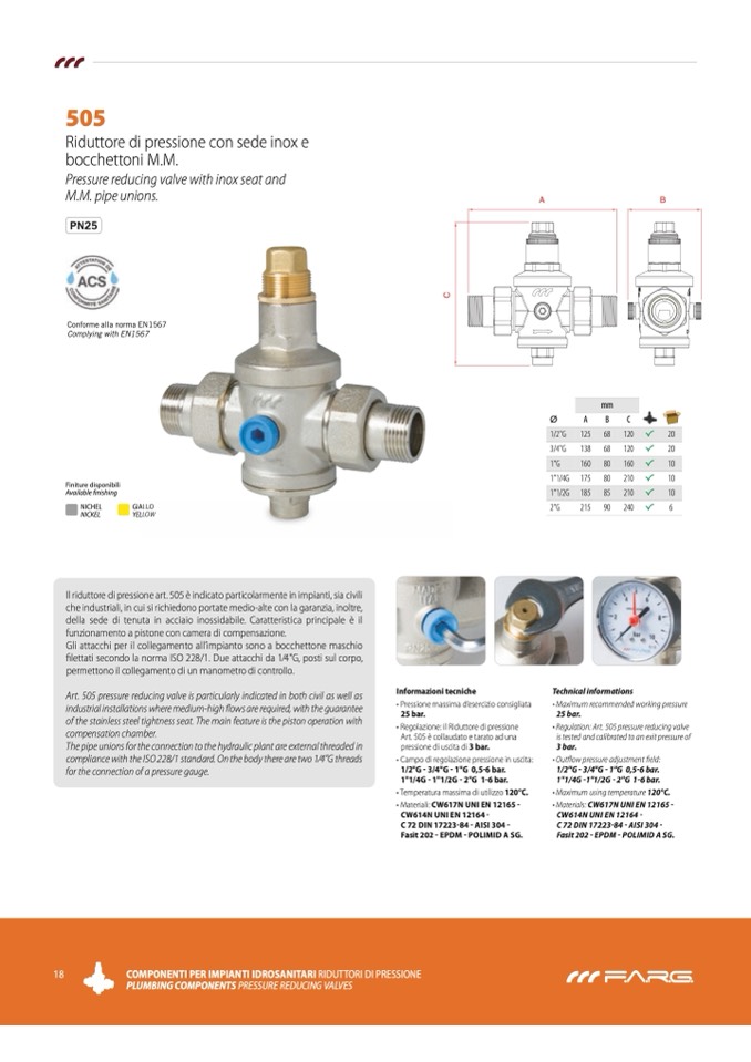 Il riduttore di pressione art. 505 è indicato particolarmente in impianti, sia civili