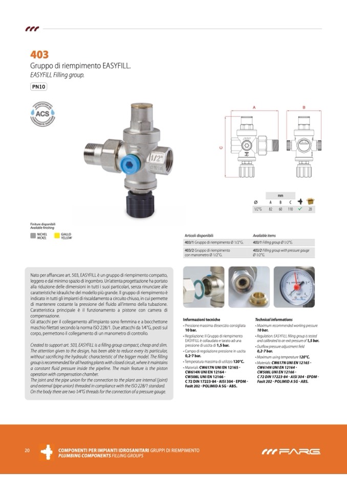 403/1 Gruppo di riempimento Ø 1/2"G.