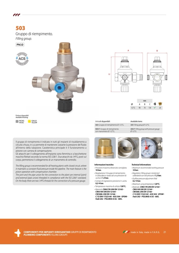 COmpONENTI pER ImpIANTI IdROSANITARI GRUPPI DI RIEMPIMENTO
