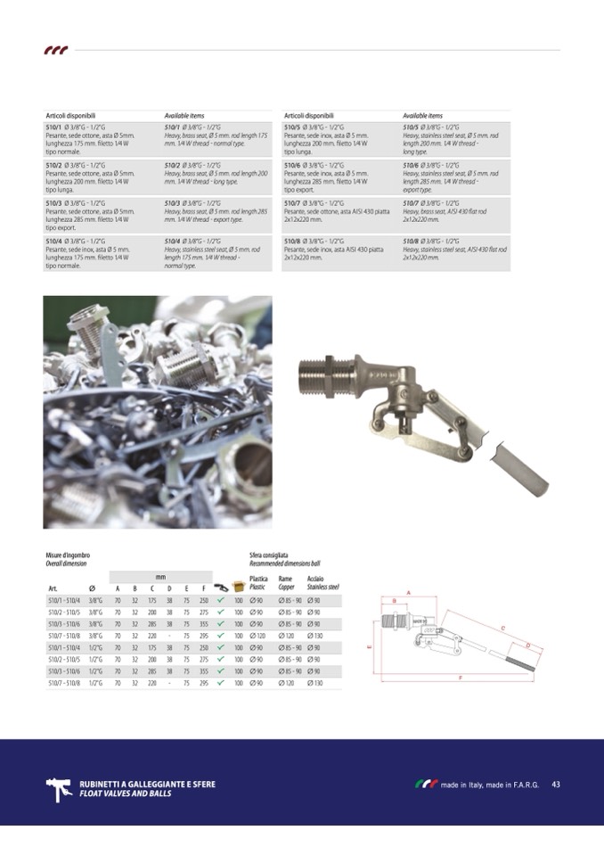 FLOAT VALVES ANd BALLS