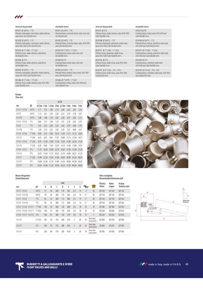 FLOAT VALVES ANd BALLS