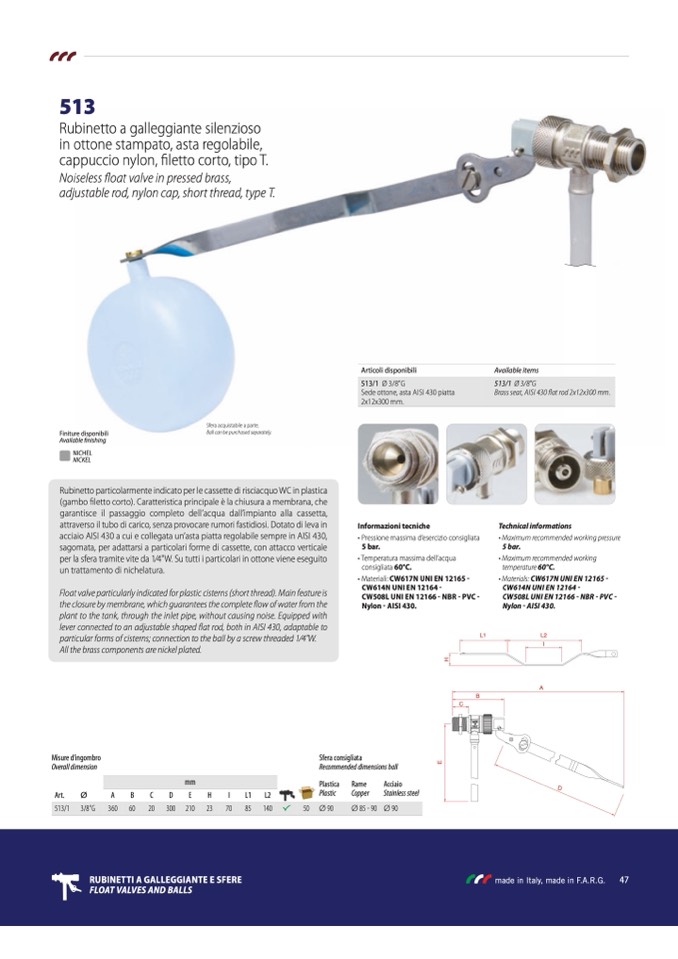 particular forms of cisterns; connection to the ball by a screw threaded 1⁄4"W.