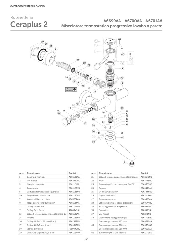 Set parti interne corpo miscelatore lato sx