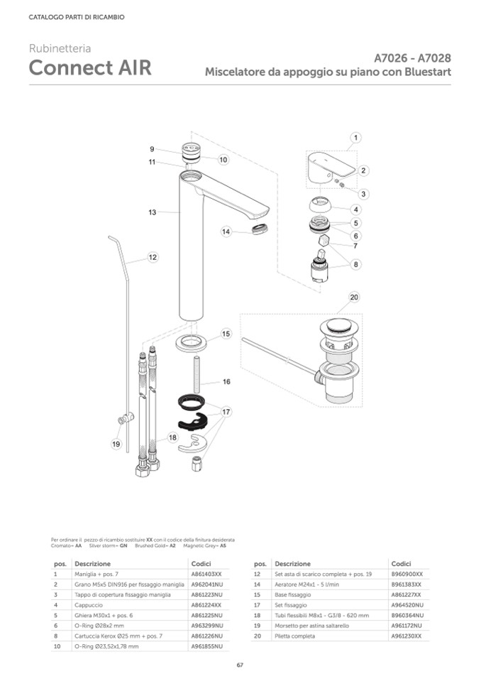 Per ordinare il pezzo di ricambio sostituire XX con il codice della finitura desiderata