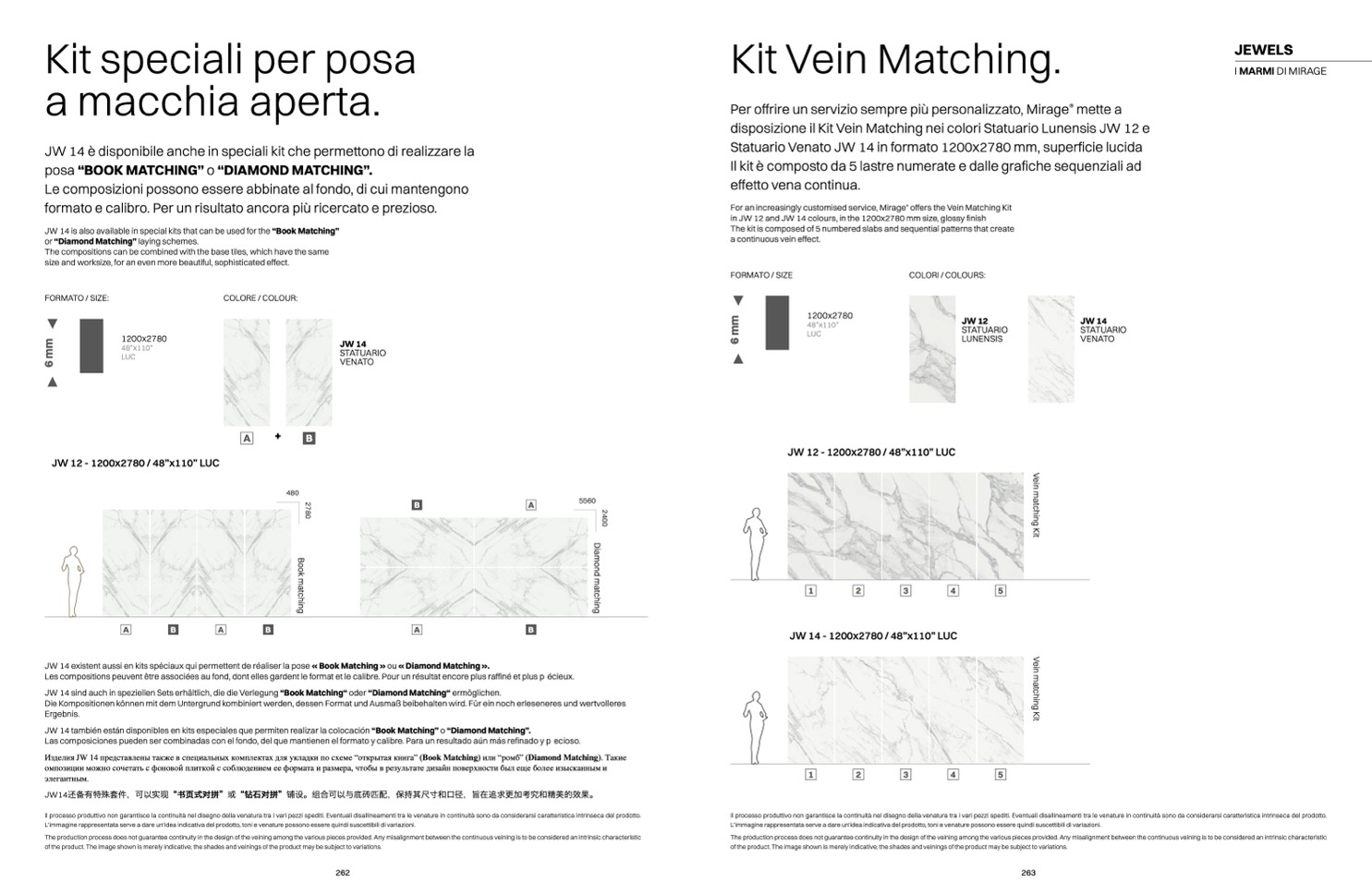 Изделия JW 14 представлены также в специальных комплектах для укладки по схеме “открытая книга” (Book Matching) или “ромб” (Diamond Matching). Такие